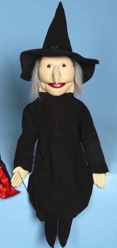 This wicked witch puppet really is absolutely realistic! She is dressed in her favorite outfit - black dress, black pointy shoes, and a black hat of course! This witch puppet has "lovely" grey hair and has a "beautiful" greenish/grey skin tone! She would not be complete without a crooked, oversized nose! Great for Halloween and year round fun. Simply insert your hand into the slot in the puppet's back to operate the mouth. Also included is one arm rod which can be clipped to either hand for movement.